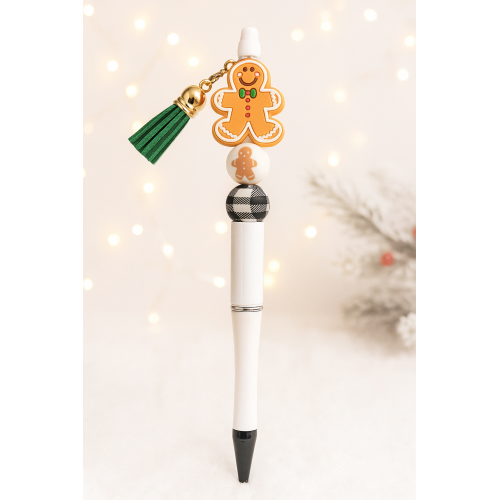 Deze feestelijke balpen met groen kerstdesign wordt versierd met kleurrijke kralen en een vrolijke gingerbread-hanger. Ideaal als leuk seizoen-accessoire om schrijven extra gezellig te maken.
