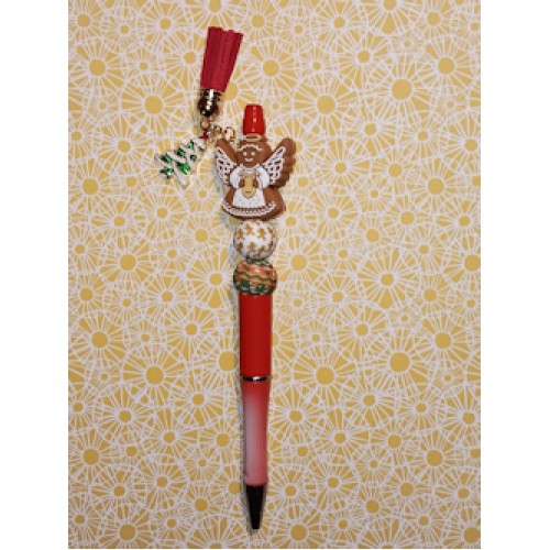 Deze feestelijke Bruine pen is een echte blikvanger voor de decembermaand. Bovenaan bevindt zich een schattige engel geïnspireerd op een gingerbread-stijl, vergezeld door twee decoratieve kralen. Daarnaast hangt er een charmante tassel en een goudkleurige hanger met een kerstboom, wat de pen een warme, kerstige uitstraling geeft. De pen ligt prettig in de hand dankzij het slanke ontwerp en is ideaal als cadeau, voor notities tijdens de feestdagen of als sfeervolle toevoeging aan je bureau.